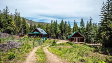 Two log homes sit on 20 acres in Priest River, Idaho, offering a mix of living space and wooded land.…
