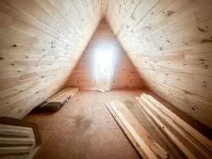 The 1,336 sq. ft. log home features 2 bedrooms and 1 bath, with recent upgrades already completed. It’s a carpenter’s special, offering the chance to finish and customize to your own taste — whether as a full-time home, hunting retreat, or weekend getaway.