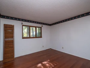 Double sliding glass doors open to a full-length back deck overlooking the forest and offering peekaboo mountain views—an ideal spot for morning coffee or evening sunsets. The kitchen features abundant cabinets, a pantry, and a convenient pass-through window to the breakfast area. The main level also includes a guest bathroom, guest bedroom, and a spacious master suite with a walk-in closet and private bath.