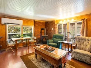 Stay comfortable year-round with a wood stove, gas wall heaters, and a mini-split system for cooling. The screened porch offers the perfect spot for morning coffee or quiet evenings by the creek.