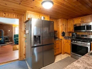 Enjoy the soothing sounds of the babbling creek from the front porch of this charming 1930s cabin, set on 2.44 peaceful, unrestricted acres. This single-level home combines historic character with modern updates, featuring a refreshed kitchen with stainless steel appliances, an updated bathroom, and warm laminate wood floors throughout.