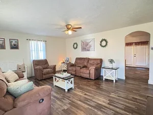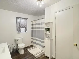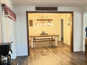 Inside, you’ll find a spacious family room with a unique freestanding gas-log fireplace, an updated kitchen with newer cabinets, and a roomy dining area. The main floor offers one bedroom, a full bath, and a large laundry room. A newer addition includes a garage and two large bedrooms with another full bath upstairs.