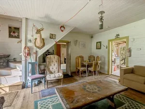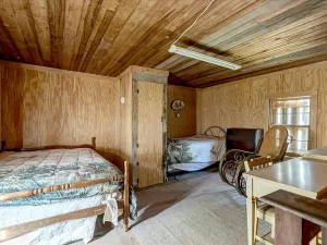A long gravel driveway winds through the mature woodlands before opening to the quaint home, where original wood floors, two fireplaces, and vintage craftsmanship transport you to a simpler time. Whether you’re looking for a hunter’s cabin, a family getaway, or a country retreat to restore and make your own, this property captures the essence of rustic living.