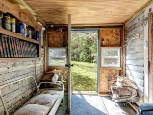 The 832 sq. ft. home features 1 bedroom, 1 bathroom, and a cozy living area with wood detailing that reflects its early 1900s character. Step outside and enjoy the peaceful surroundings — walk the creek, explore the wooded acreage, or relax under the canopy of trees as the sounds of nature fill the air.
