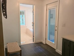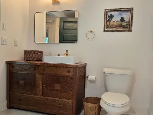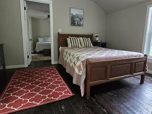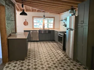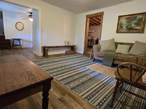 Originally built with classic farmhouse craftsmanship, the home has been thoughtfully renovated and modernized by its current owners. Inside, you’ll find a warm and welcoming atmosphere where historic charm meets contemporary updates. The new kitchen features modern finishes and appliances, ideal for home-cooked meals after a day outdoors. The spa-inspired bathroom includes a luxurious soaking tub, creating a private retreat for rest and relaxation.