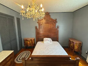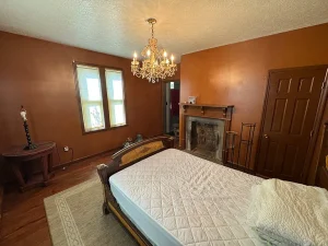The 2,420 sq. ft. farmhouse exudes character and history, featuring 4 bedrooms, 2 full bathrooms, and genuine hardwood floors throughout. Original horizontal wood-planked walls, tall windows, and two fireplaces create a warm, rustic atmosphere that’s both inviting and authentic. Many of the antique furnishings remain, adding to the home’s timeless appeal.