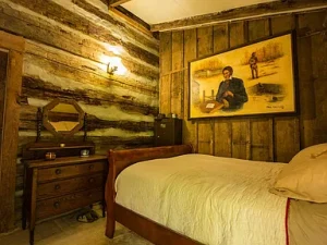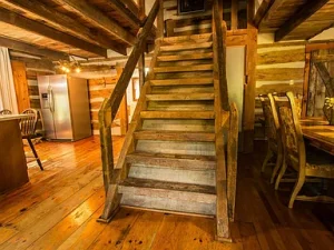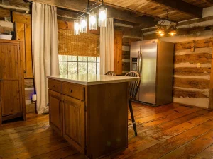 At the heart of the property is a rustic cabin built with reclaimed 1800s wood, giving it authentic historic character. Inside, the home features 4 bedrooms, 1.5 baths, a kitchen with front-yard views, and a dining area with a cozy fireplace. A 2009 addition expanded the living room, providing ample space for gatherings. While the cabin has central heating, a wood-burning stove offers a warm, rustic touch.