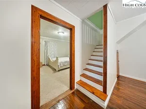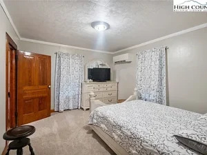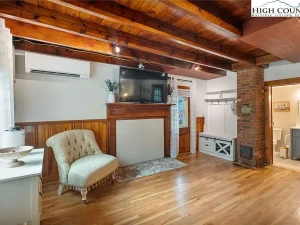 Outside, you’ll find open pastures ideal for horses or livestock, a rustic barn, and a stocked trout stream—a true angler’s paradise and a serene spot for relaxation. A natural spring from the neighboring property provides water to the home, enhancing its authentic country appeal.