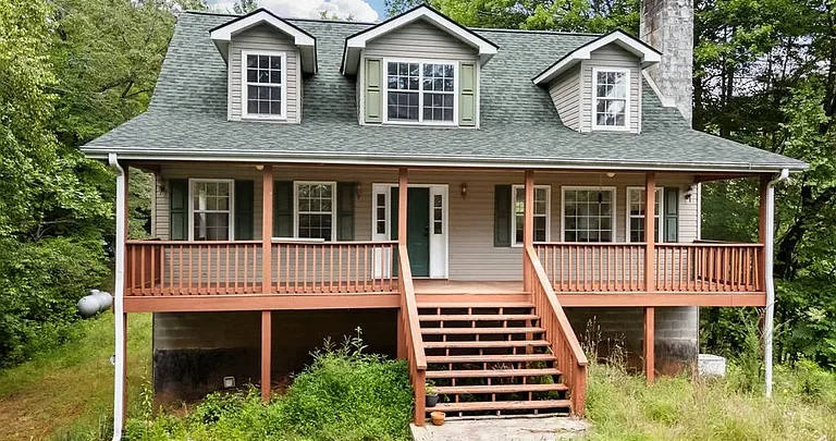 Hidden on nearly 15 wooded, unrestricted acres, this 3-bedroom, 3-bath home offers privacy, charm, and endless potential. A tree-lined driveway leads to a quiet homesite with full-length front and back porches, perfect for enjoying the peace of the North Carolina mountains.