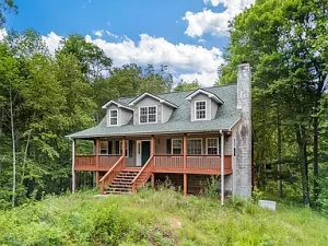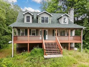 Hidden on nearly 15 wooded, unrestricted acres, this 3-bedroom, 3-bath home offers privacy, charm, and endless potential. A tree-lined driveway leads to a quiet homesite with full-length front and back porches, perfect for enjoying the peace of the North Carolina mountains.
