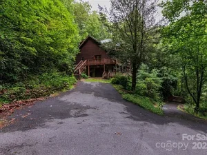 $400,000 – Furnished 3-Bedroom Log Cabin with Creek & Mountain Views on 2.14 Acres in Bryson City, NC
