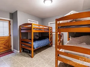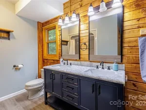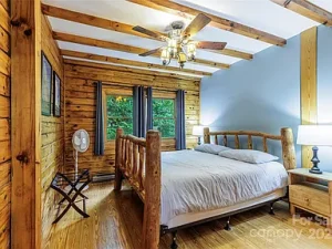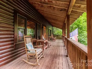 The bedrooms are bright and comfortable, creating restful spaces that reflect the cabin’s mountain charm. Both bathrooms are well-appointed, ensuring convenience for residents and guests alike. Step outside onto the covered porch and take in the mountain air as you listen to the gentle flow of the nearby creek — a perfect way to start or end your day.