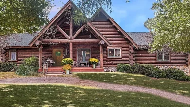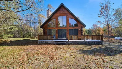 $250,000 – Waterfront Log Home on 39 Acres with 20-Acre Pond and Island in Lapeer, MI (Auction).