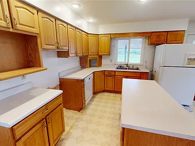 A back deck overlooks the open land, creating a relaxing place to enjoy the scenery and unwind in a private outdoor setting. The layout offers flexibility for family living, guests, or a buyer who simply wants room to spread out in comfort.