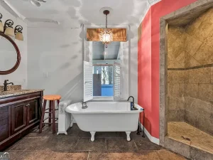 The home features high ceilings that reflect early 20th-century craftsmanship and create a sense of openness throughout the interior. These tall ceilings enhance natural light and offer flexibility for creative design ideas that can blend modern comfort with historic charm. The house rests on a solid foundation and is topped with a durable metal roof, providing a strong starting point for restoration and long-term improvements.