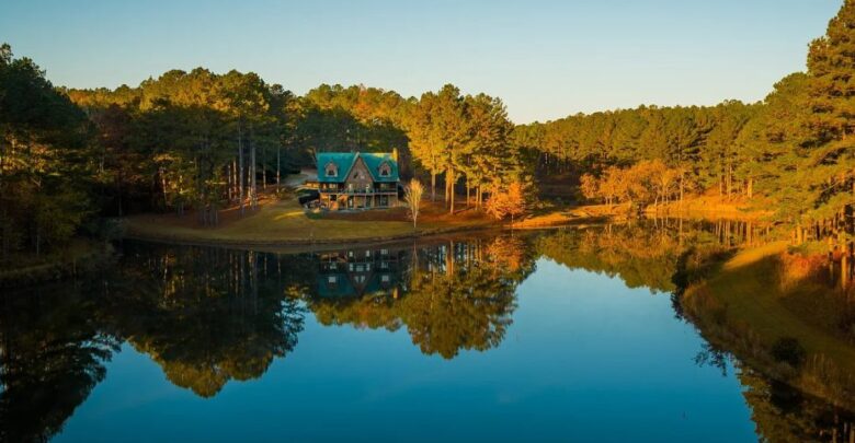 This property includes a large lodge style home set on approximately 1,544 acres near Macon, Georgia. The residence offers about 4,000 square feet with five bedrooms and four and a half bathrooms. Because the land stretches across forests, creeks, and a private lake, the setting supports outdoor living and recreation. Some owners might treat the property as a family retreat. Others could focus on land management, hunting, or conservation activities.