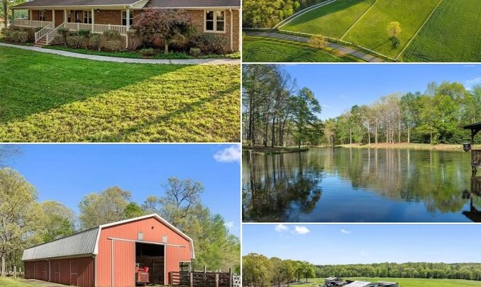 This gated farm property spans 76.9 acres in Midland, North Carolina, and offers a rare mix of pasture, woods, and working infrastructure. The long driveway lined with white fencing sets the tone for a property designed for daily use. Moreover, the land supports both agricultural routines and relaxed outdoor living. Open fields stretch across the front acreage, while wooded sections frame the landscape. As a result, the setting feels private without disconnecting from surrounding roads. Daily life here moves at a steady pace shaped by land and space.