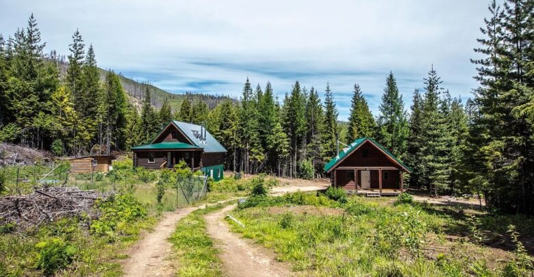 Two log homes sit on 20 acres in Priest River, Idaho, offering a mix of living space and wooded land. The main home includes three bedrooms and two bathrooms with about 2,439 square feet. The second home adds additional space for guests or extended use. Because both structures remain unfinished, the property may suit someone planning a custom setup. In addition, the land borders public areas and includes water features, which expands its potential use.