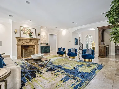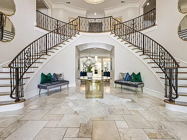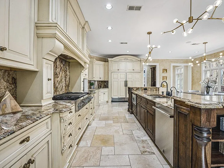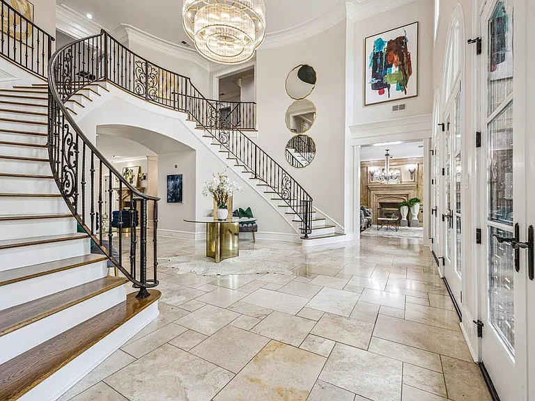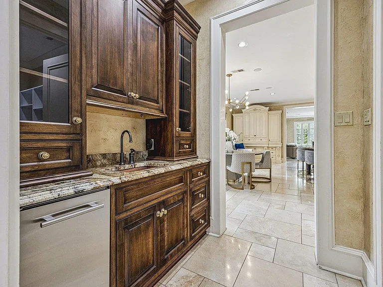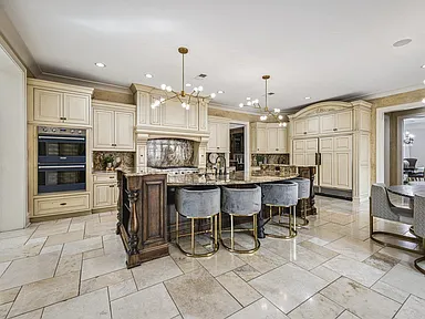 A grand entryway welcomes you inside, where soaring ceilings, rich materials, and beautifully curated spaces add warmth and distinction to each room. The kitchen is thoughtfully arranged for gathering and function, opening into welcoming spaces that support both casual breakfasts and formal occasions.