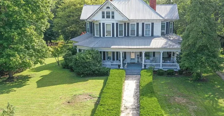 This classic 1905 Southern residence sits on 5.09 private acres, offering historic elegance, architectural detail, and long-term value in a peaceful Main Street setting.