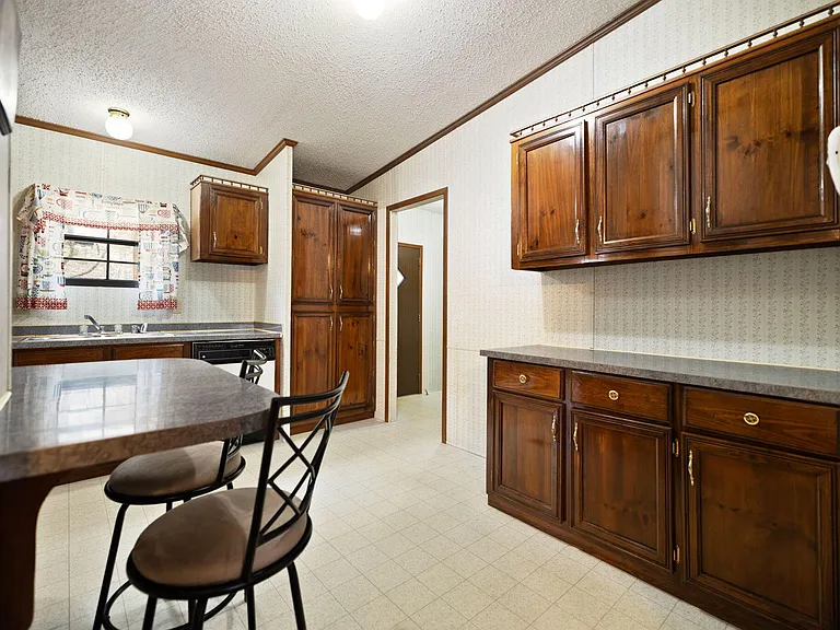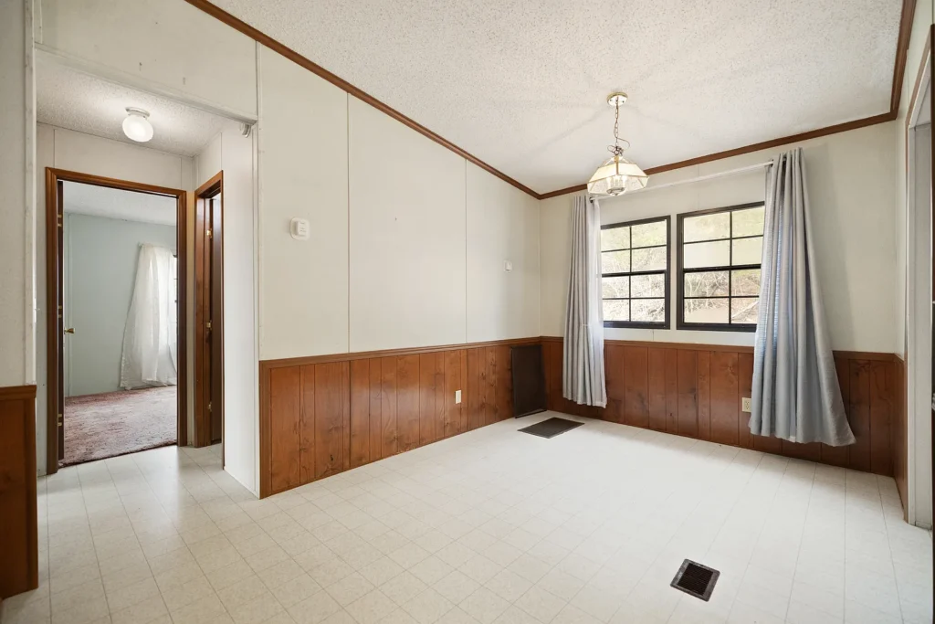 The building has an interior area of ​​approximately one thousand five hundred and fifty-six square feet, with ample space for family or guests. The interior environment includes large closets for storage, carpet and vinyl flooring, and curtained windows that allow natural light.